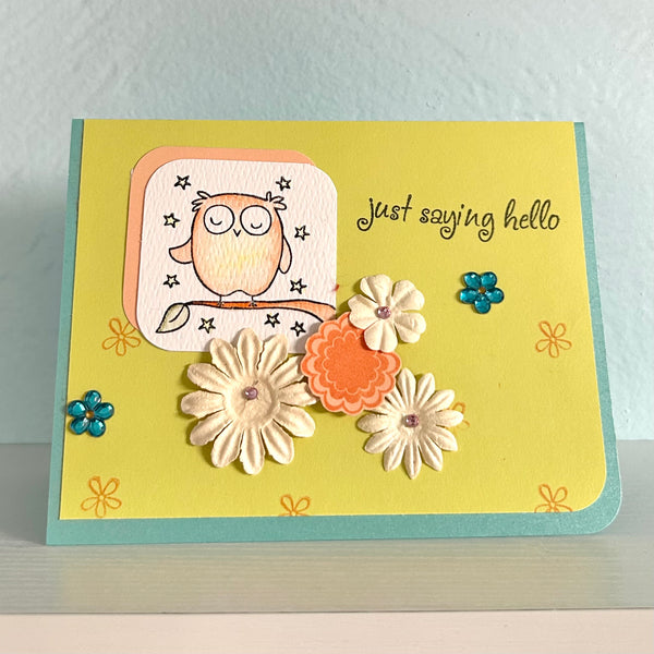 Custom Handmade "Just Saying Hello" Owl Card